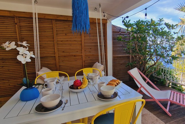 La résidence de charme dispose d'une spacieuse terrasse commune avec piscine vue sur l'océan et à 2 minutes en voiture de la plage de Grande Anse. La location se fait pour un minimum de 4 nuits à partir de 85€/nuit. (Location dernière minute au weekend en sus).